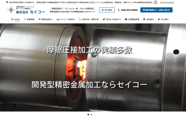 埼玉草加の摩擦圧接加工の精密金属加工会社セイコーHPリニューアルしました。 今後とも取引先様のために情報公開していきますのでよろしくお願いいたします。