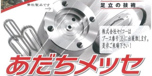 11月162015新着情報 弊社の加工部品があだちメッセパンフレット中央に採用されました。 この品物は旋盤・フライス・研磨で加工した流体制御に使うノズル部品です。 弊社汎用旋盤熟練技術者も、ものづくり足立区のパンフレットに抜擢されております。 機械の前の立ち姿が美しいと思いませんか!? 是非35番ブースにお立ち寄りください! Post navigationPreviousPrevious post:あだちメッセに出展いたします!NextNext post:あだちメッセFacebookサイトでご紹介いただきました!