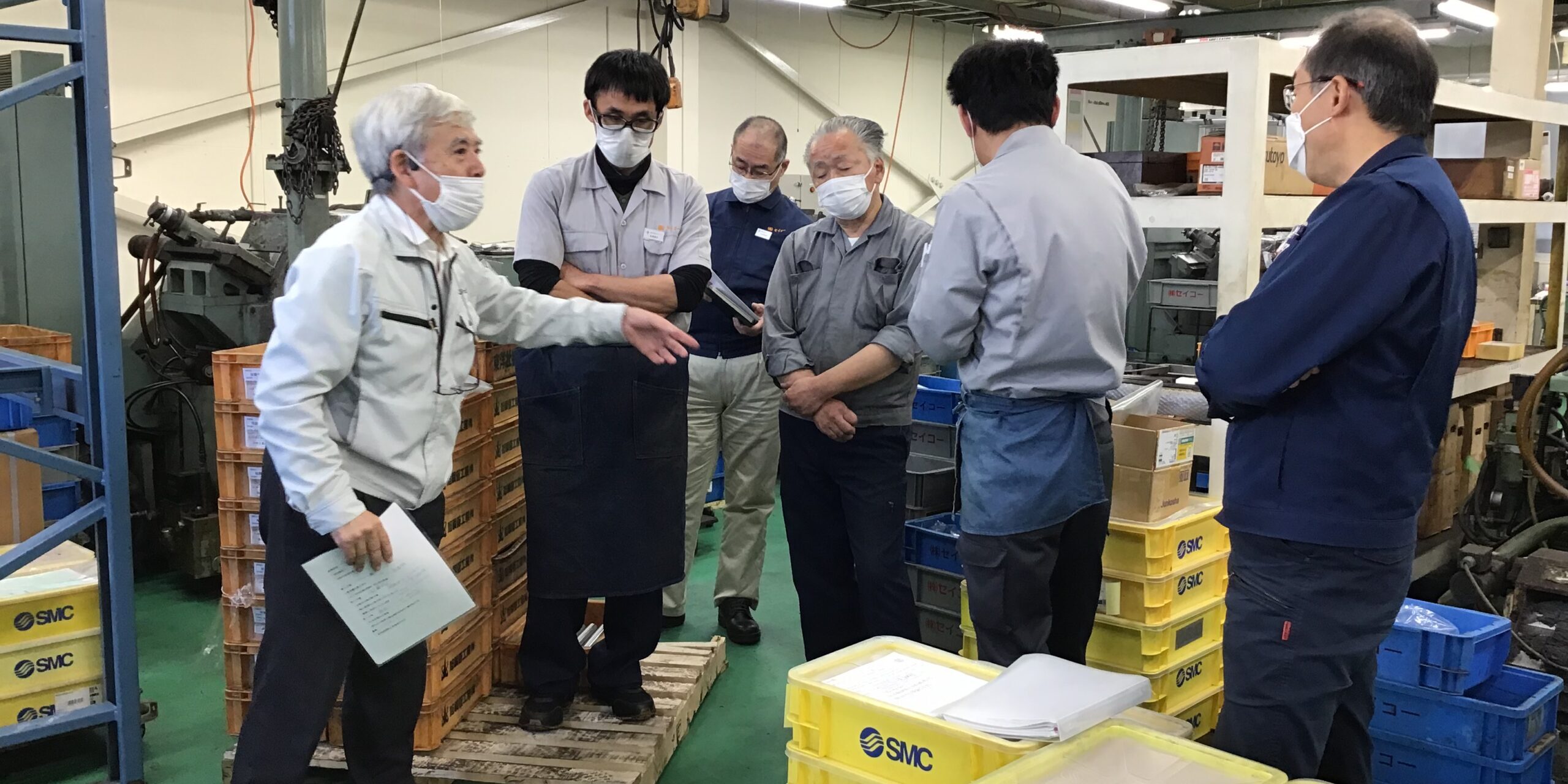 1月132022新着情報日本カイゼンプロジェクト 会長 柿内幸夫様をお招きし『カイゼンの勉強会』を行いました。 第1工場、第2工場、第3工場と各所を回り、前回カイゼン案が出た部分を見ていただいたり、新たなカイゼンのアドバイスをいただきました。 2022年セイコーは、狼貪虎視の精神で走り続けます! Post navigationPreviousPrevious post:年末年始休業のお知らせNextNext post:新型コロナウイルス感染症の対応について