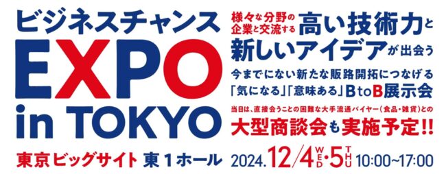このたび、12月4日から5日まで開催いたしました「ビジネスチャンスEXPO in TOKYO」は、皆様のおかげをもちまして、無事に閉幕いたしました。 期間中は、多くのお客様にご来場いただき、心より御礼申し上げます。 展示…