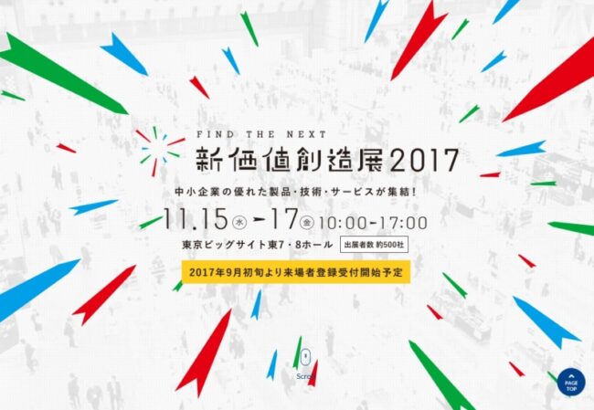 【会期】2017年11月15日(水)~17日(金) 10:00~17:00 【会場】 東京ビッグサイト東7・8ホール 新しいアイディアや技術を求める大企業・中堅企業等の研究開発、事業企画、 マーケティング部門をはじめ、新…