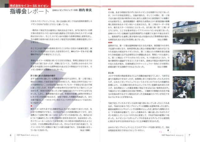 株式会社セイコーが日本カイゼンプロジェクト会報 no.6に掲載されました。 日本カイゼンプロジェクト柿内会長のご指導により、セイコーの5S活動は新たな一歩を踏み出すことができました。 セイコー掲載ページ